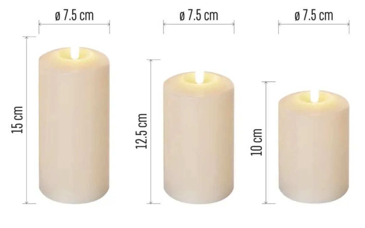 Sveces darbojas ar 3xAAA baterijām un kalpo daudzkārt ilgāk nekā tradicionālās sveces, nodrošinot ilgstošu un drošu apgaismojumu.