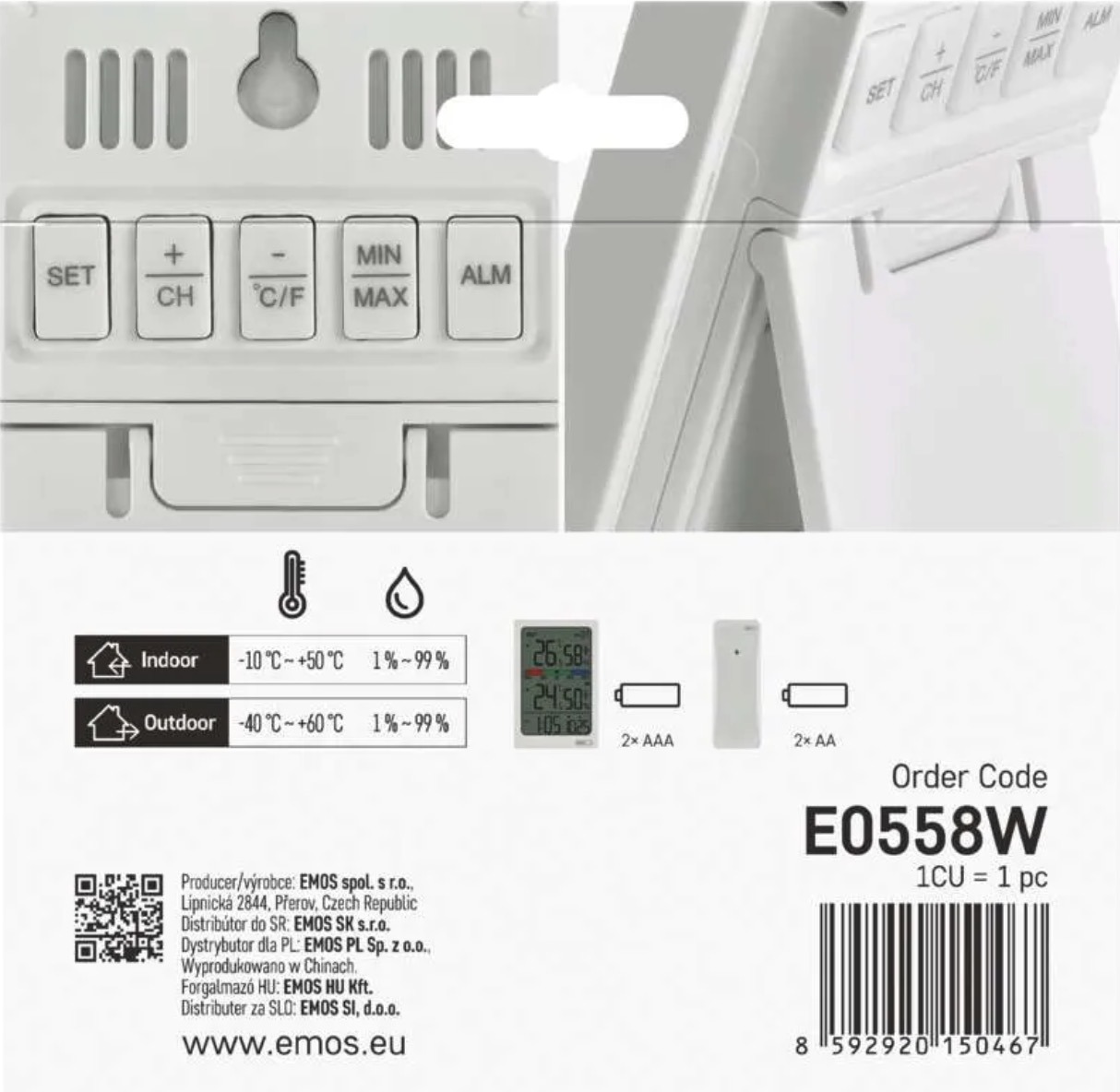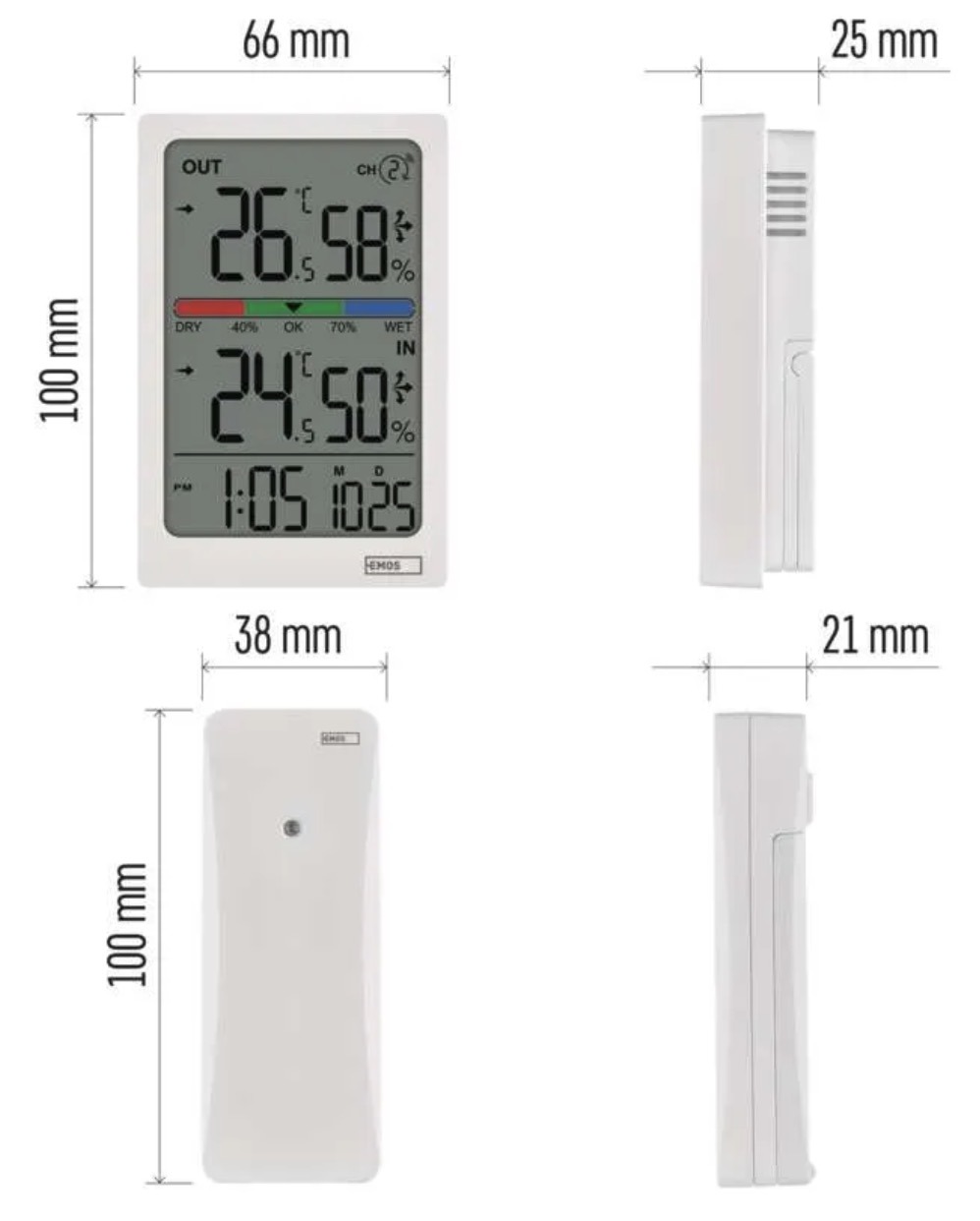 Outdoor temperature is measured using a wireless sensor with a range of up to 100 m in open space.