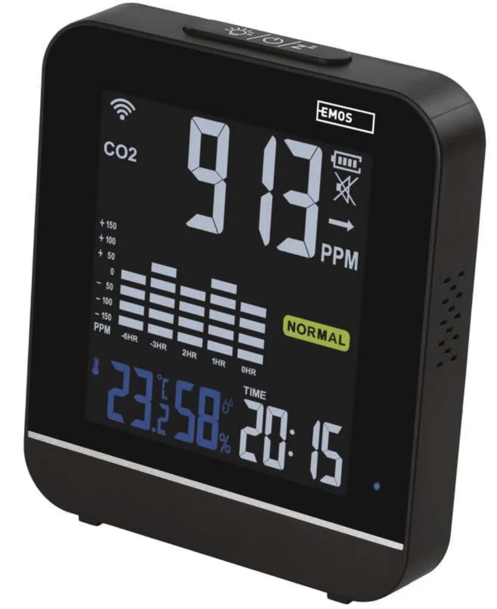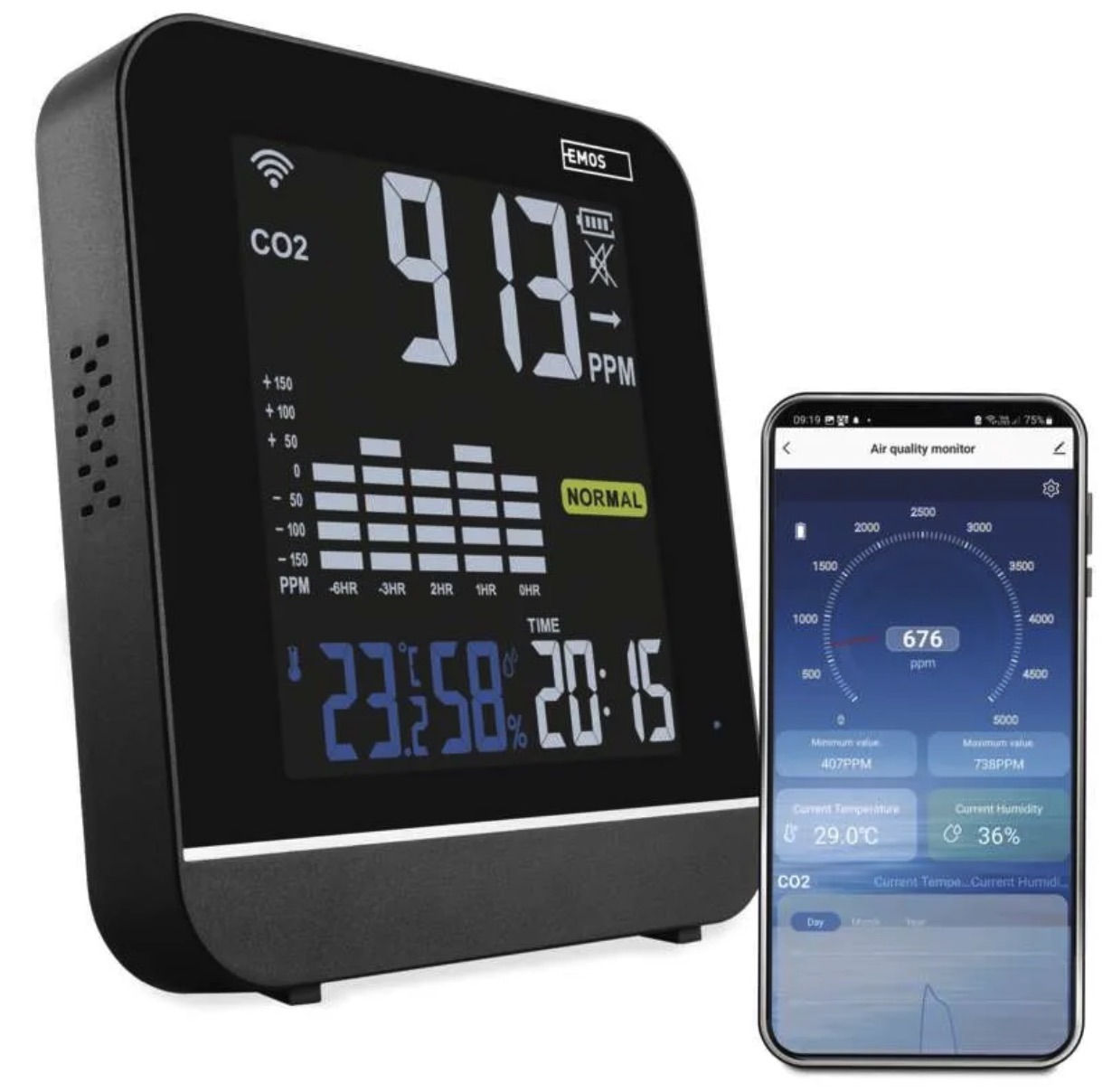 The device alerts you with a built-in alarm and sends notifications to your smartphone via the EMOS GoSmart app.