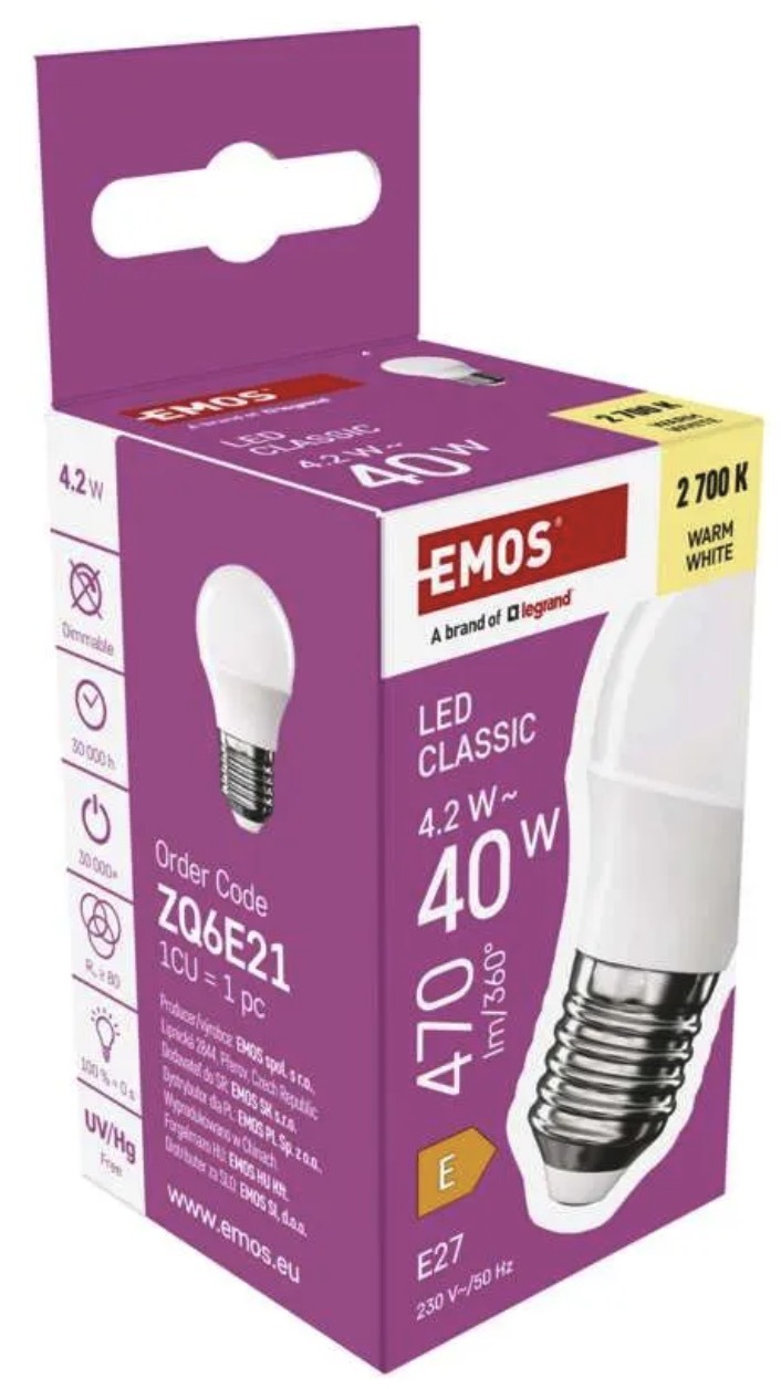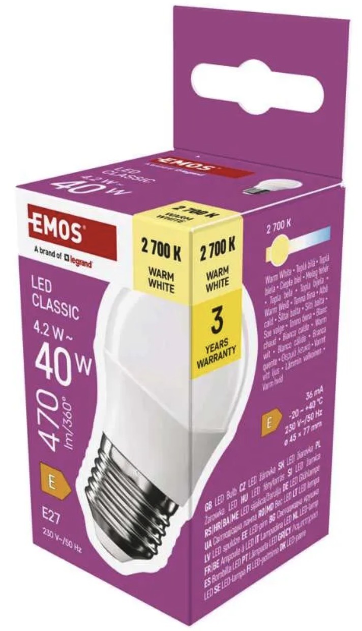 The bulb delivers 470lm at 4,2W and replaces a 40W incandescent bulb. Suitable for efficient lighting in homes, workspaces, and general interior use.
