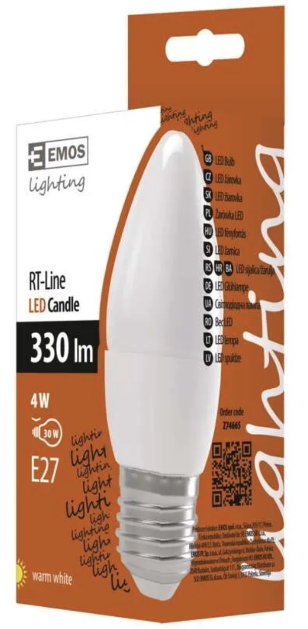 The LED bulb Classic Candle with E27 base is suitable for decorative fixtures, wall lamps and chandelier style lighting where a compact candle shape and pleasant warm white light are important. Its 330lm output provides soft and even lighting for everyday use.