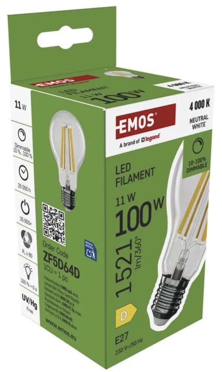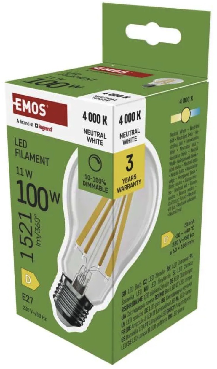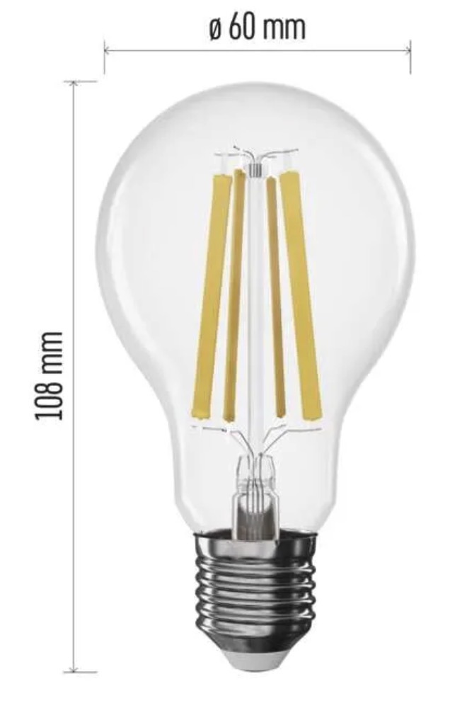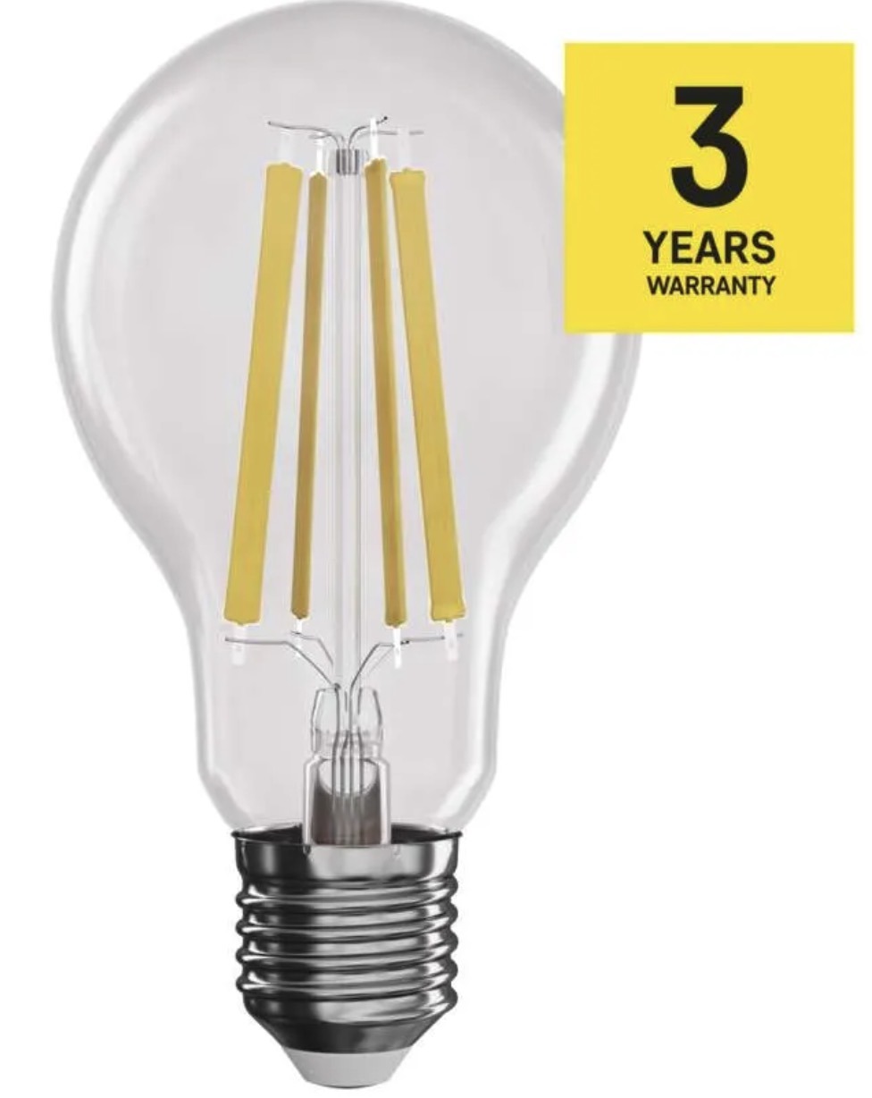 The EMOS LED Filament A60 bulb with E27 base provides bright and even neutral white light in spaces where good visibility and everyday comfort matter. With 1521lm output and 4000K color temperature, it is well suited for kitchens, work areas, hallways and other frequently used rooms.