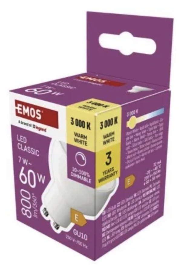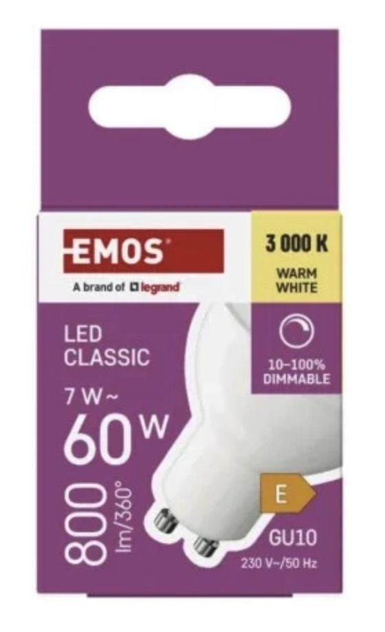 With 7W power and 800lm luminous flux, this bulb replaces a 60W incandescent bulb and provides efficient lighting with dimming capability. It is a practical choice for spaces where warm white light and adjustable brightness are important.