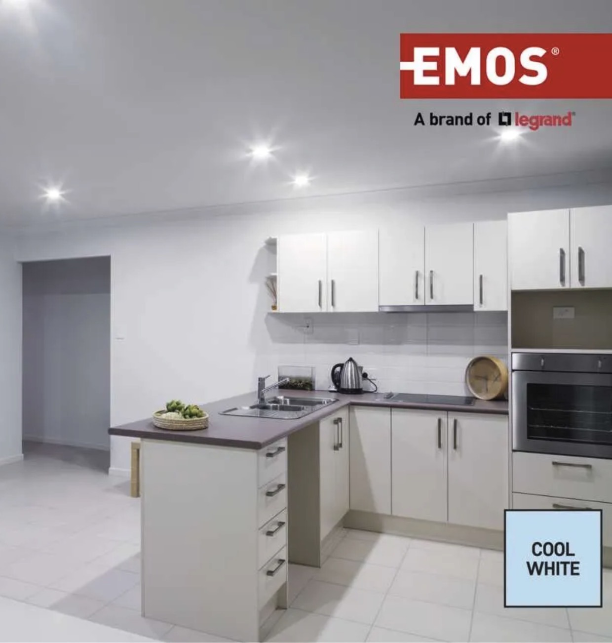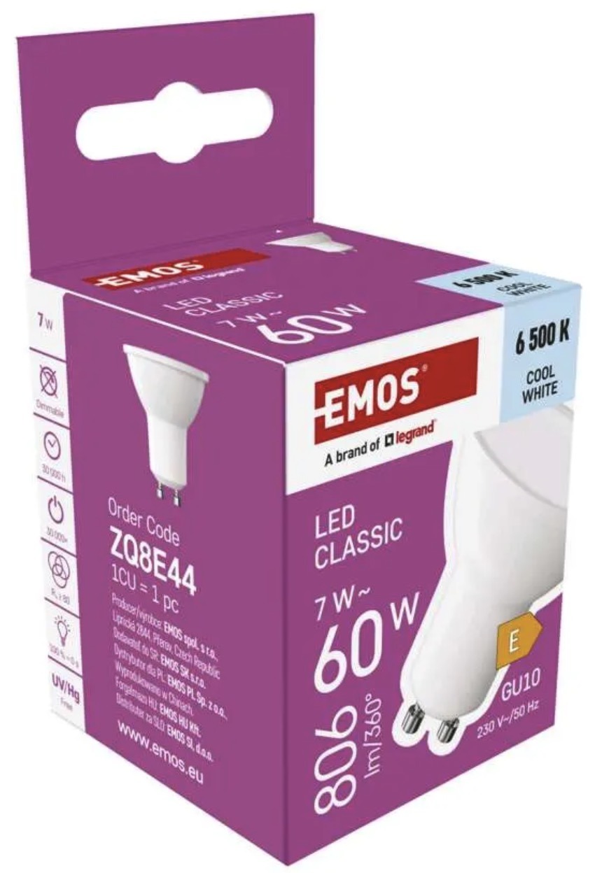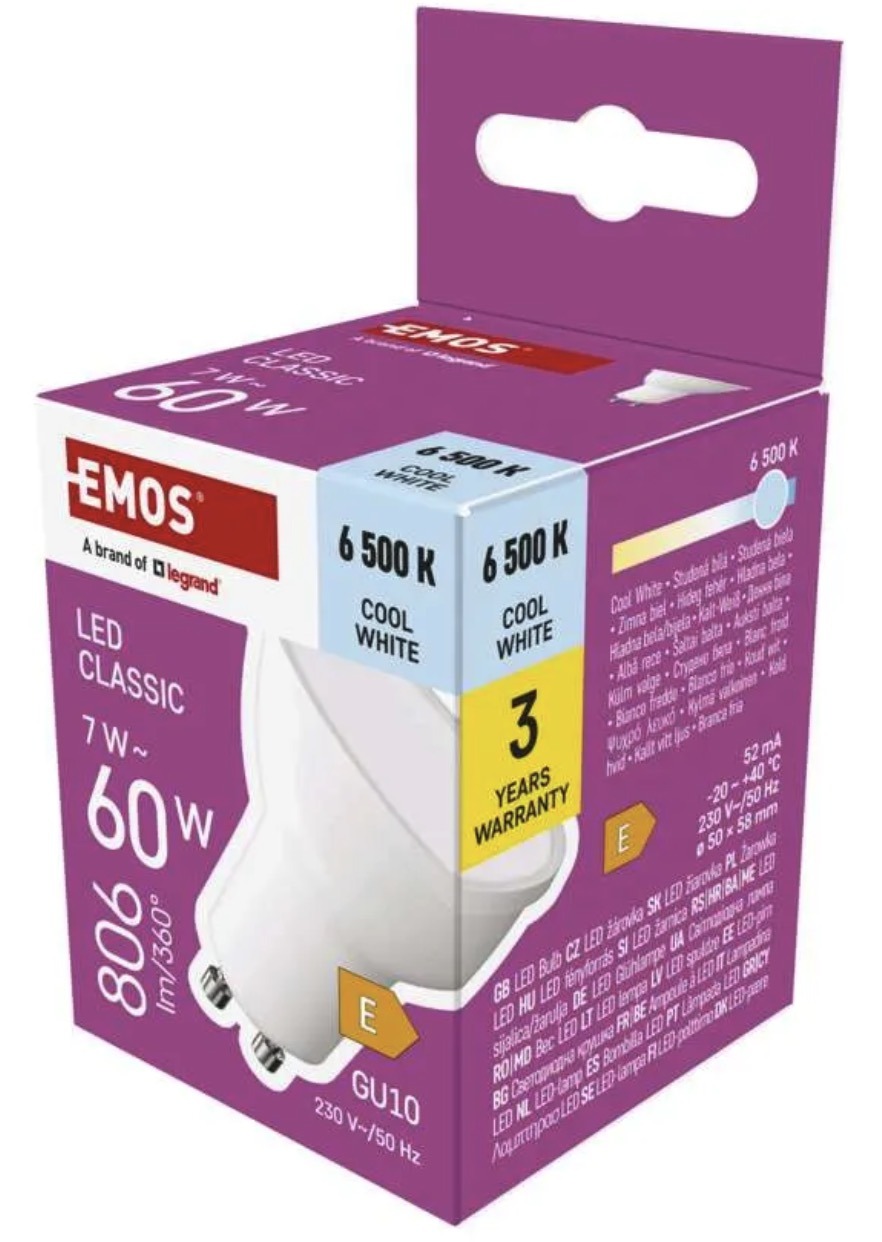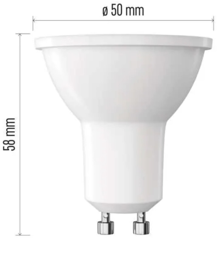 More powerful GU10 LED bulb with cool white light for bright and clear illumination. It is a practical option where a stronger lighting effect and better visibility are needed.