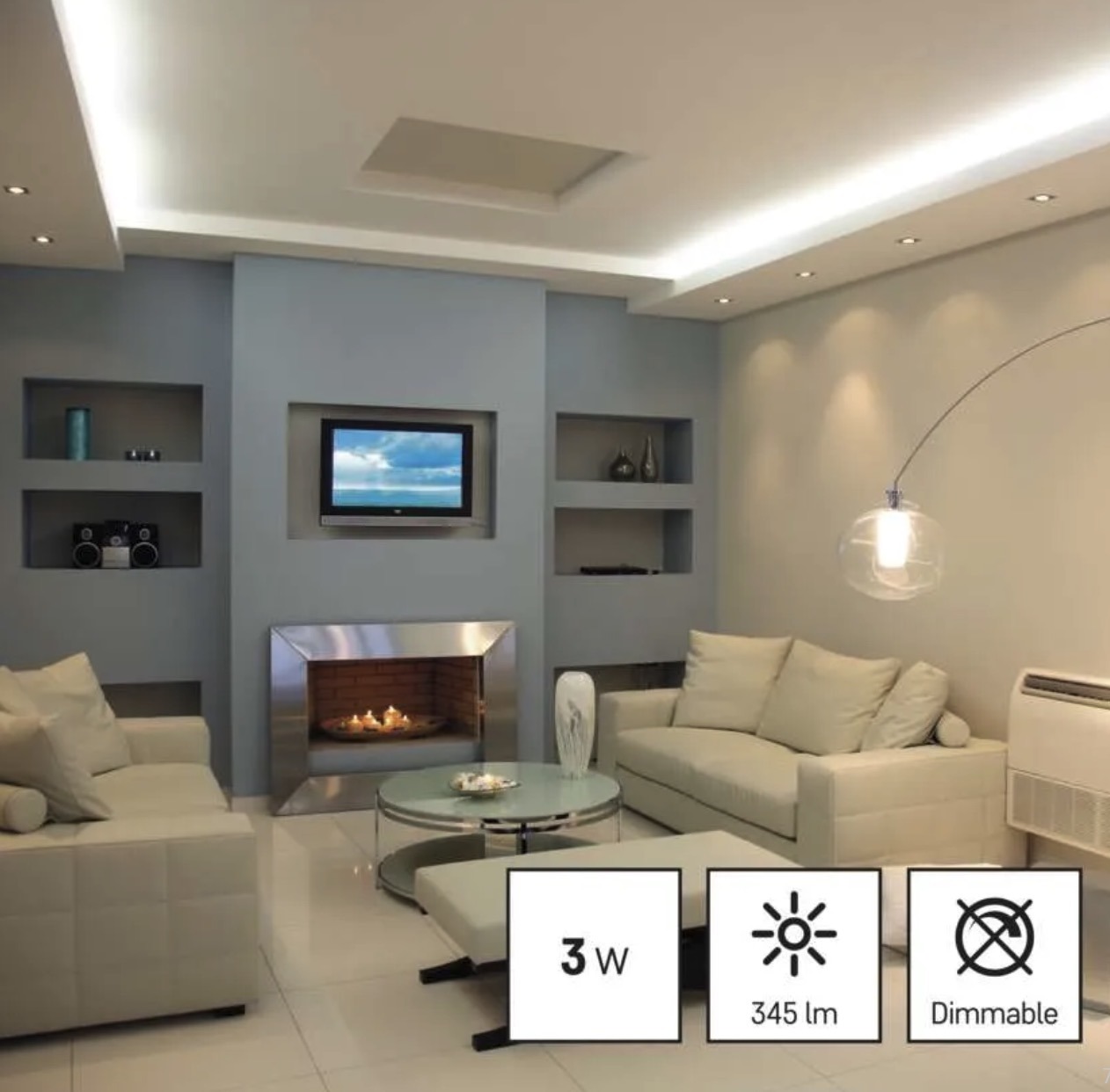 With 345lm output at 3W power consumption, this bulb replaces a 32W incandescent bulb. Suitable for reflector fixtures in homes, offices, and other interior spaces.