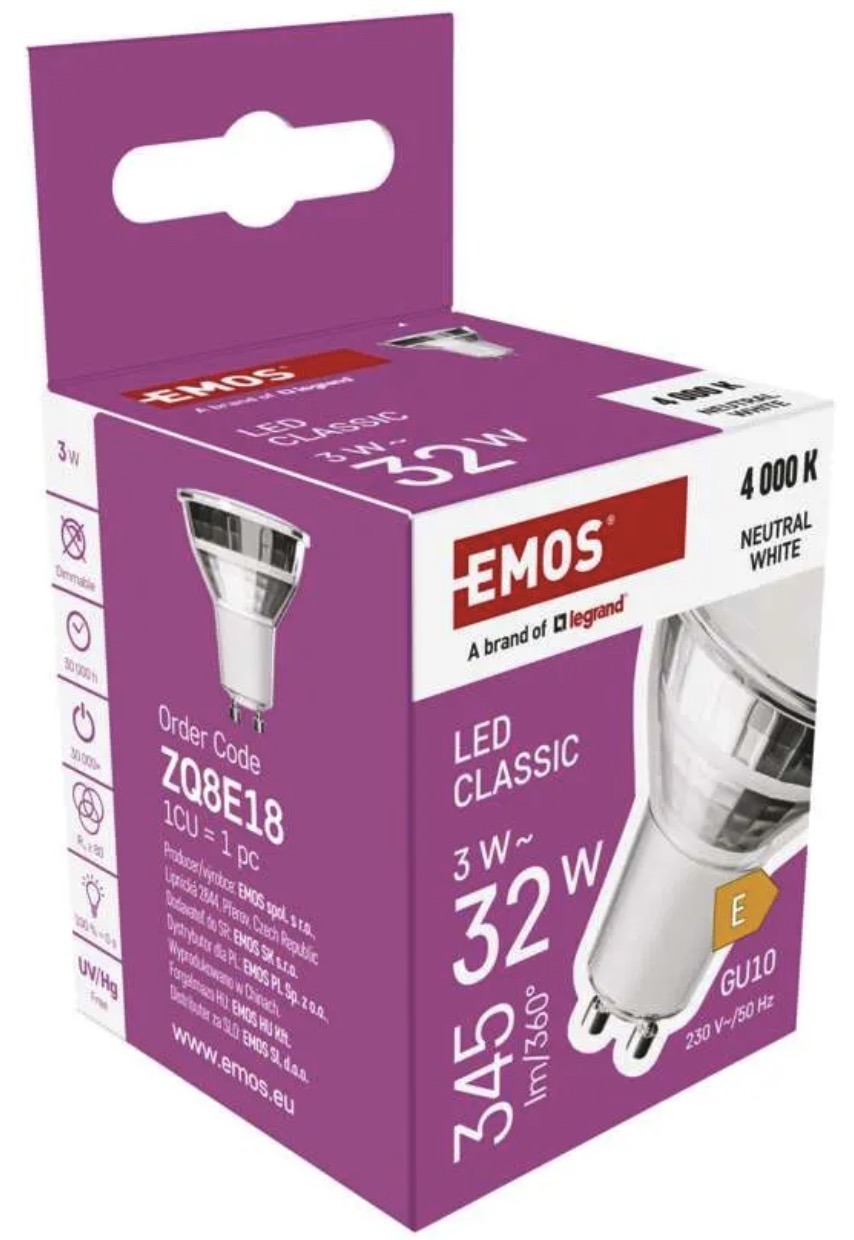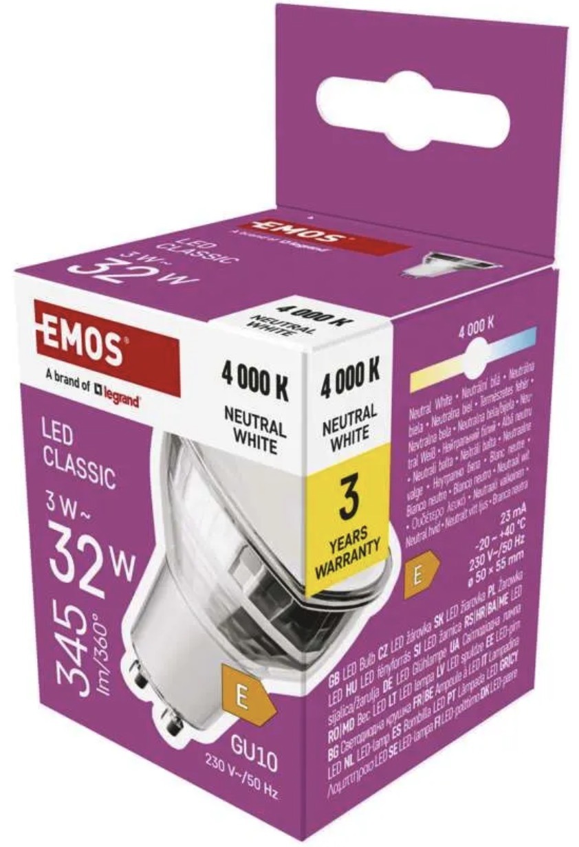 This bulb delivers 345lm at 3W and replaces a 32W incandescent bulb. Suitable for reflector fixtures in homes, offices, and other interior settings.