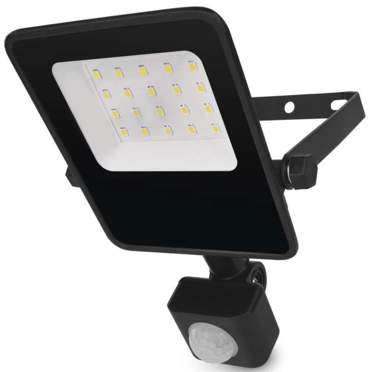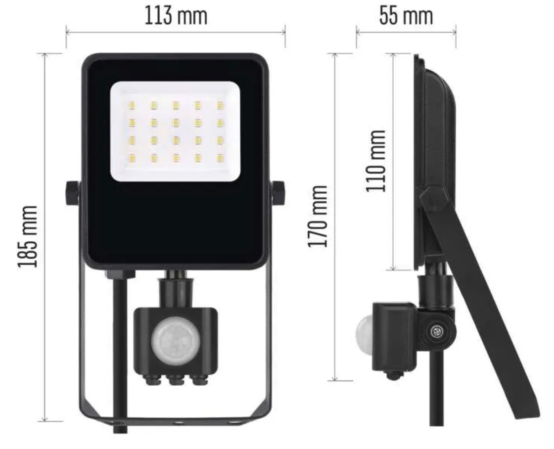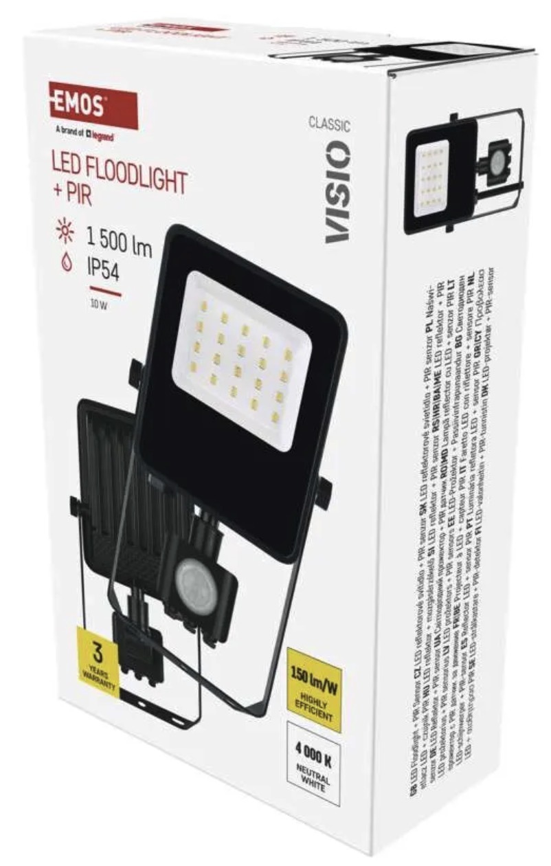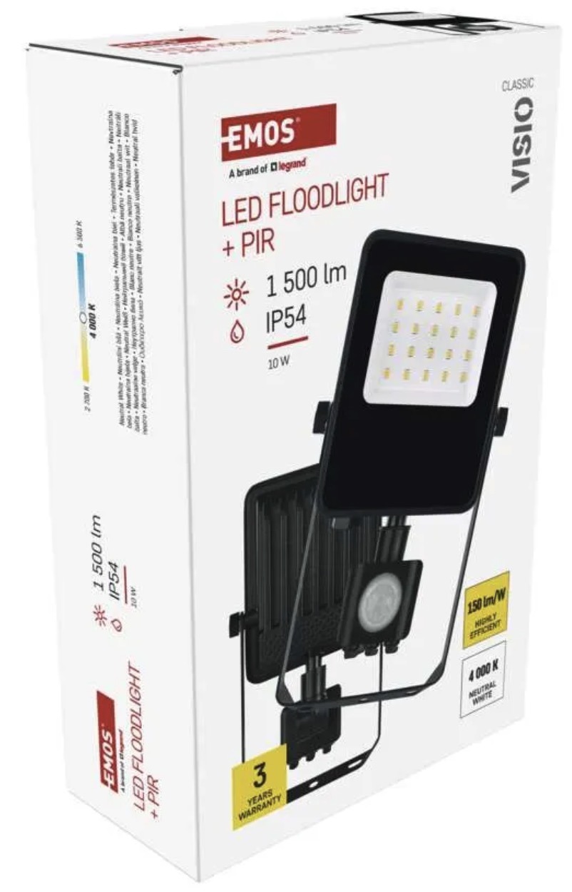 The VISIO LED floodlight with motion sensor is suitable for entrances, driveways, yards and work areas where automatic light activation is needed. It delivers 1500lm, neutral white 4000K light and is designed for surface mounting.