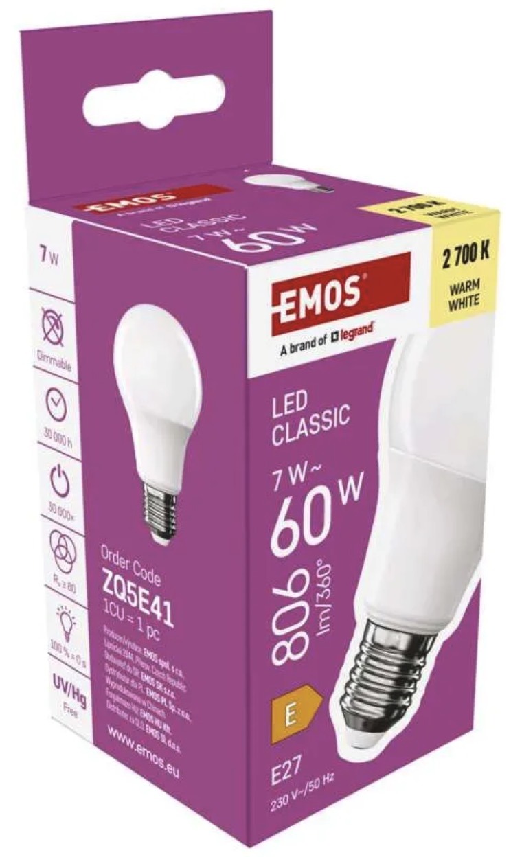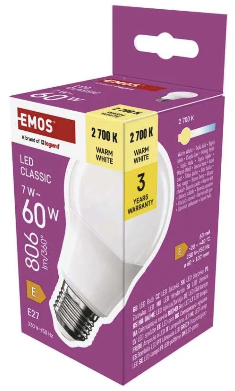 The EMOS LED A60 bulb with E27 base provides bright and uniform neutral white light at 4000K. With a luminous flux of 1521 lumens, it is ideal for kitchens, work areas, offices, retail and commercial spaces where clear visibility is essential.