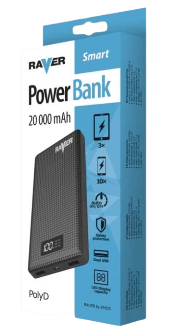 Power Bank 20,000mAh 2.1A Li-Po 3.7V 2×USB RAVER