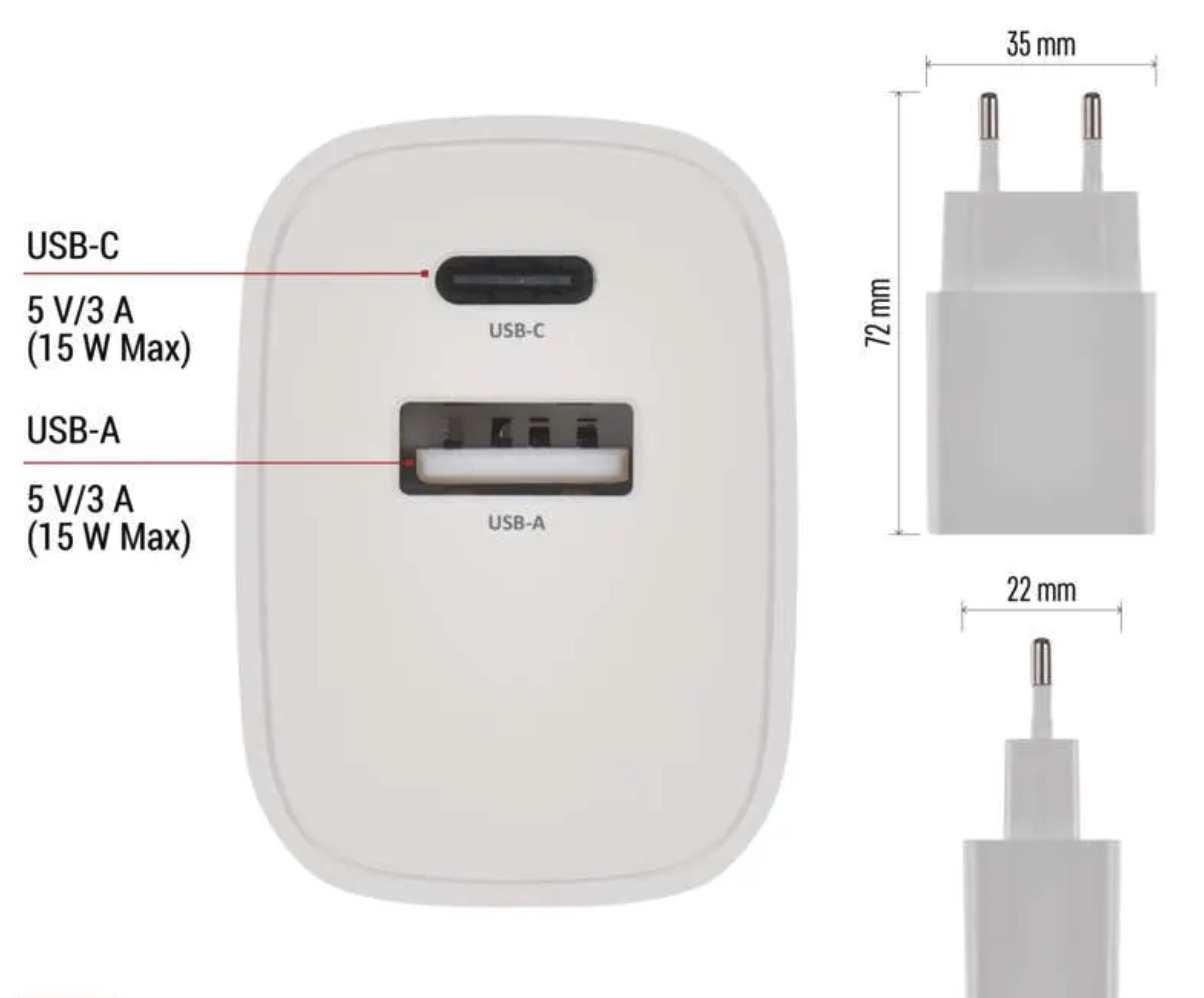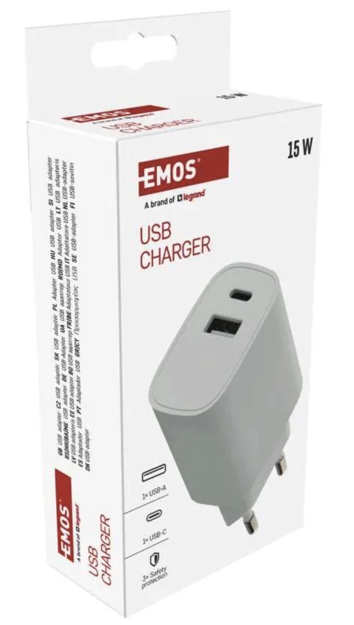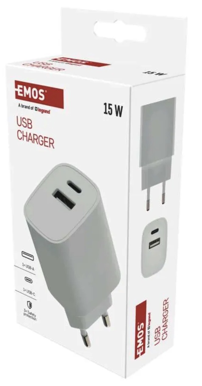 The EMOS USB charger with USB A and USB C ports is a practical solution for charging everyday devices at home, in the office or while travelling. It allows convenient charging of smartphones, tablets and other compatible devices with one compact adapter.