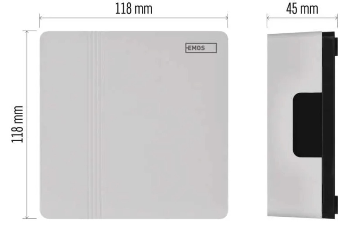 - Doorbell dimensions: 118 × 118 × 45mm