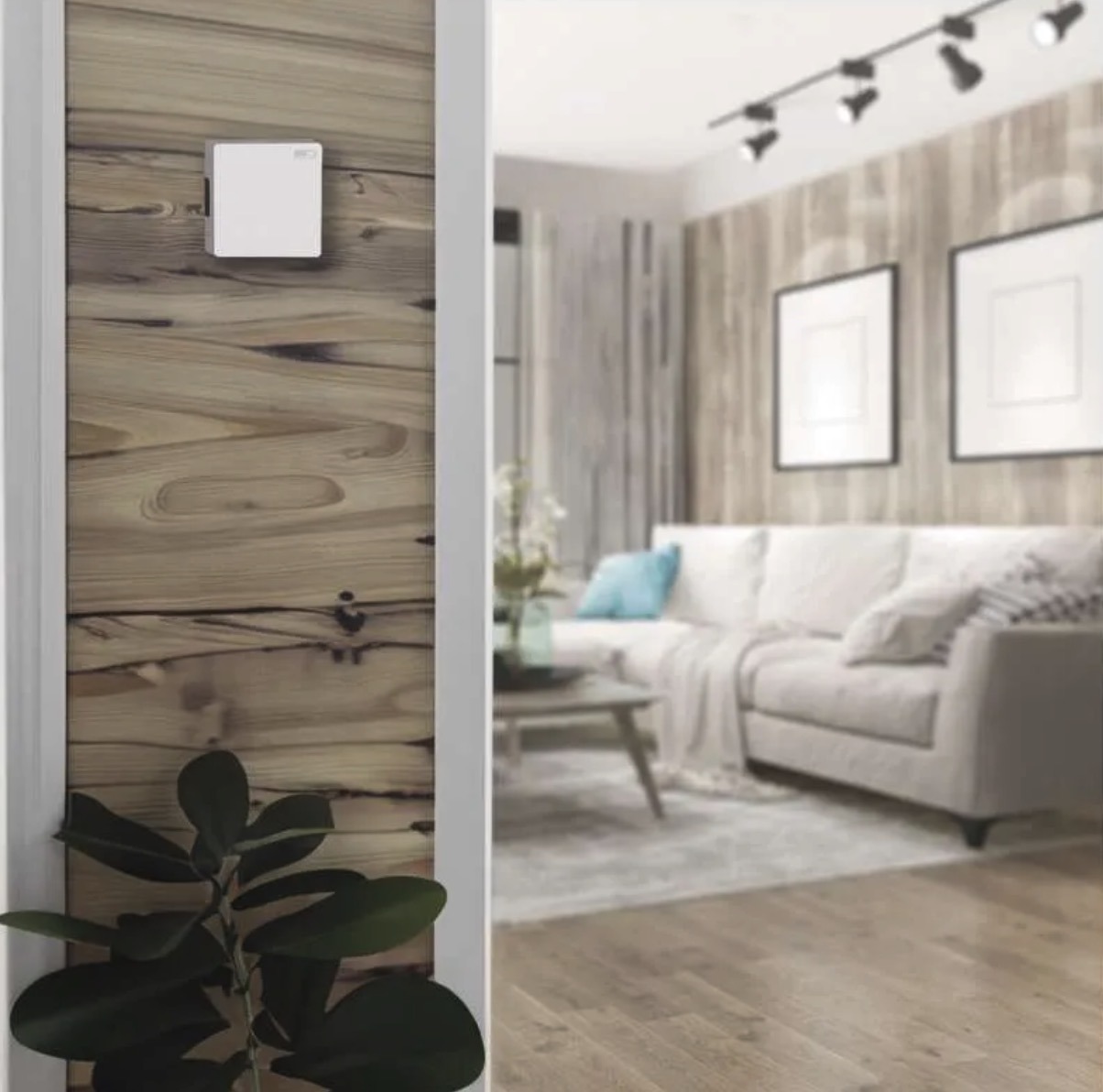 The main unit can be powered either by 4×AA batteries or by an external transformer, making it easier to adapt to different installation setups. Its white minimalist design fits naturally into a wide range of interiors.
