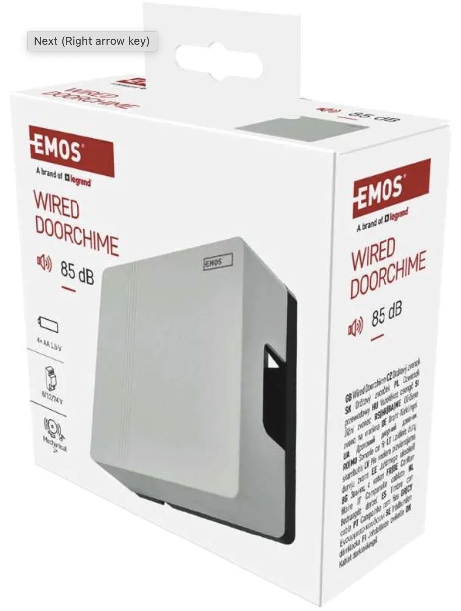 The EMOS wired doorbell is a simple and reliable choice for apartments, houses and offices. It provides a clearly audible 85dB chime and suits users looking for a classic doorbell with straightforward installation.