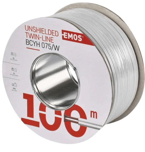Neekranēts vītā pāra kabelis, 2 x 0,75 mm, balts, 100 m