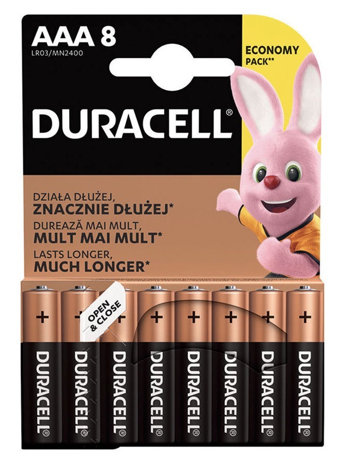 Duracell Basic AAA sārma baterijas MN1500 1,5V 8 gab. daudzums
