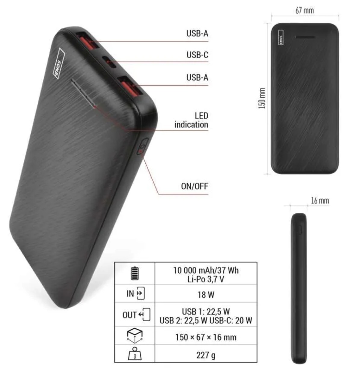 Akumulatora ietilpība: 10 000 mAh / 37 Wh