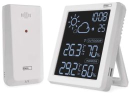 Цифровой термометр с гигрометром, беспроводным датчиком, будильником и датой E0558W EMOS