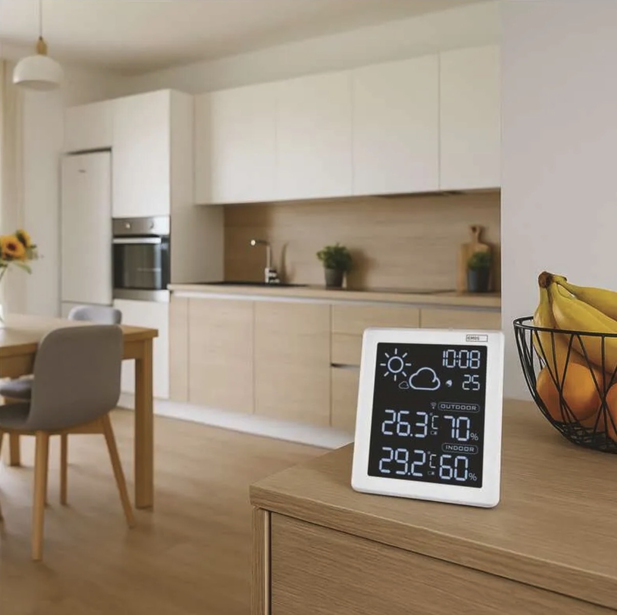 Современная метеостанция обеспечивает точное измерение температуры и влажности внутри и снаружи помещения.