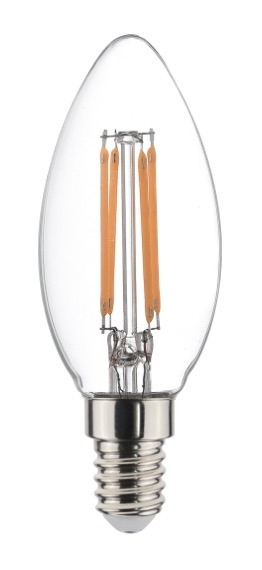 LED лампа SYLVANIA Clear Retro V5 в форме свечи с цоколем E14 сочетает классический прозрачный дизайн и современную LED технологию. Тёплый белый свет 2700K создаёт уютную атмосферу, идеально подходящую для гостиной, ресторанов и гостиниц.