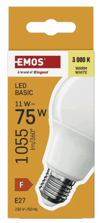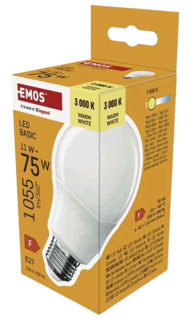 LED GLS A60 E27 11W 240V 1055lm 3000K лампа EMOS