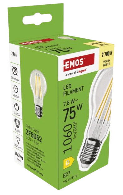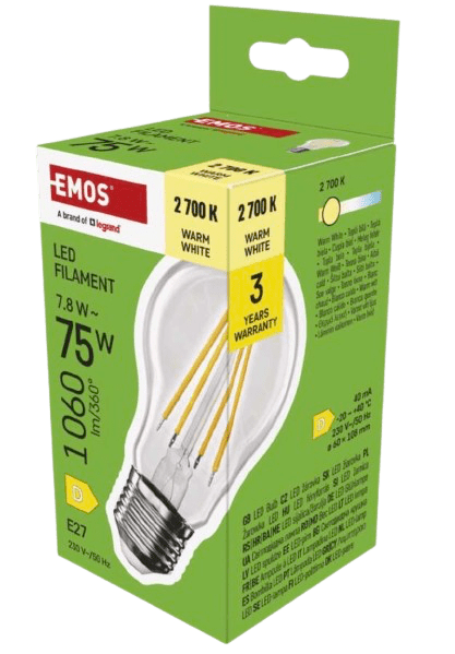 LED GLS FILAMENT A60 E27 7.8W 240V 1060lm 2700K лампа EMOS