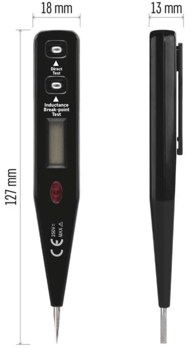 Тестер подходит для определения переменного напряжения в диапазоне 12–230V и постоянного напряжения в диапазоне 12–250V. Компактный корпус с клипсой облегчает переноску, поэтому инструмент удобно держать под рукой для ежедневной работы.