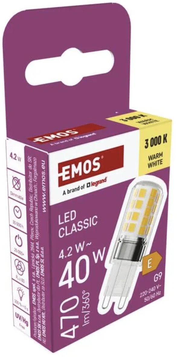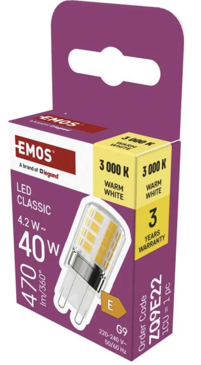 Срок службы 30 000 часов и до 25 000 циклов включения делают эту модель надежным выбором для длительной эксплуатации. Это удачный вариант для покупателей, которым нужна простая, эффективная и классическая LED лампа G9.