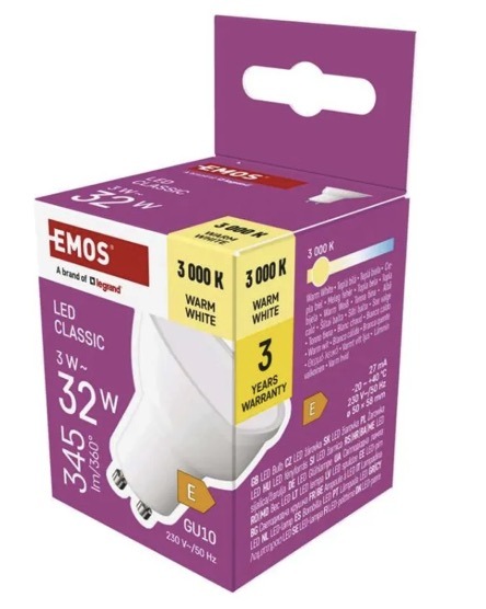При мощности 3W и световом потоке 345lm эта лампа заменяет лампу накаливания 32W и обеспечивает экономичное освещение для повседневного использования. Это хороший вариант для мест, где важны теплый белый свет и низкое энергопотребление.