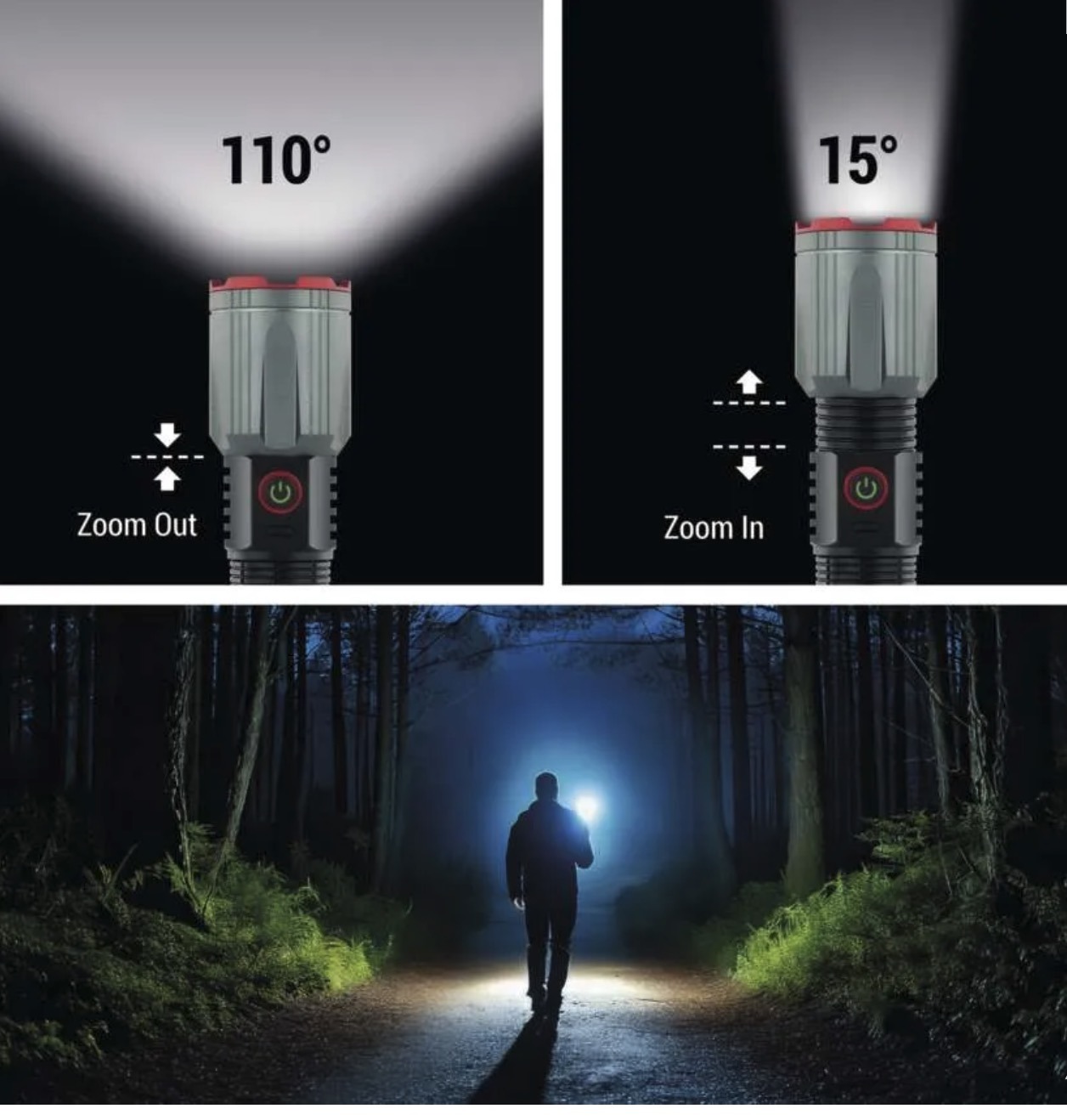 Аккумуляторный LED металлический фонарь подходит для повседневного использования там, где нужен мощный источник света с регулируемым фокусом. Он обеспечивает до 1200lm, дальность луча до 200m и работает от встроенного аккумулятора 2200mAh 3,7V Li Ion 18650.