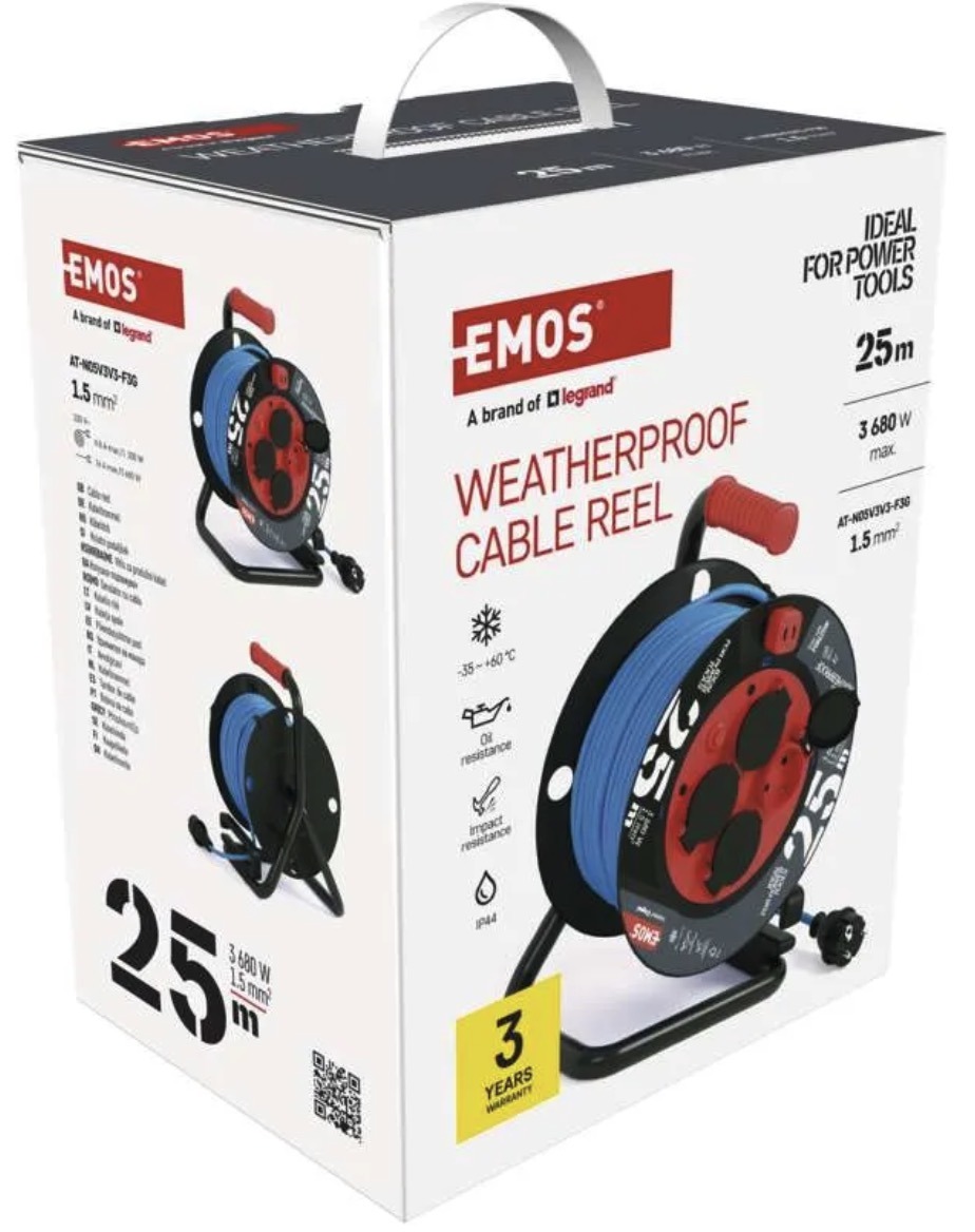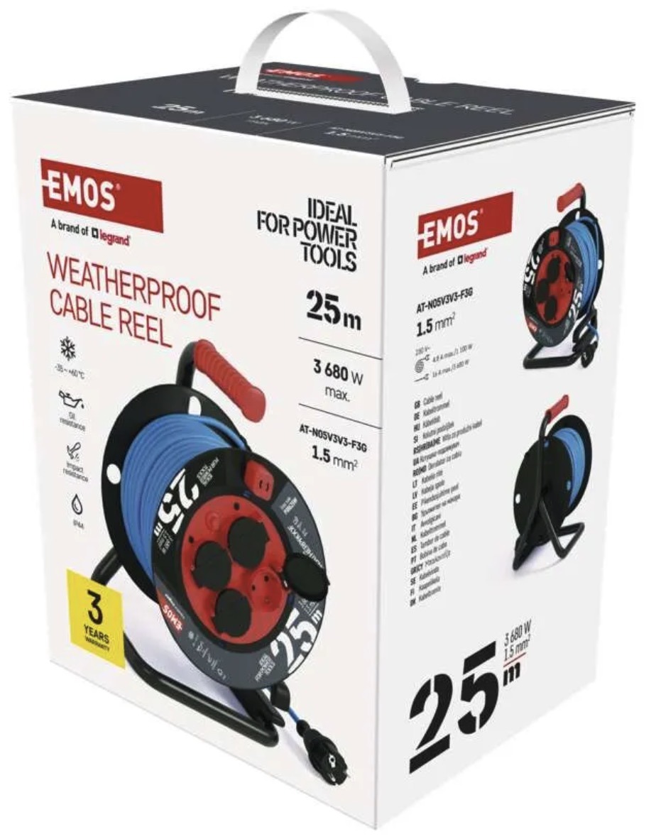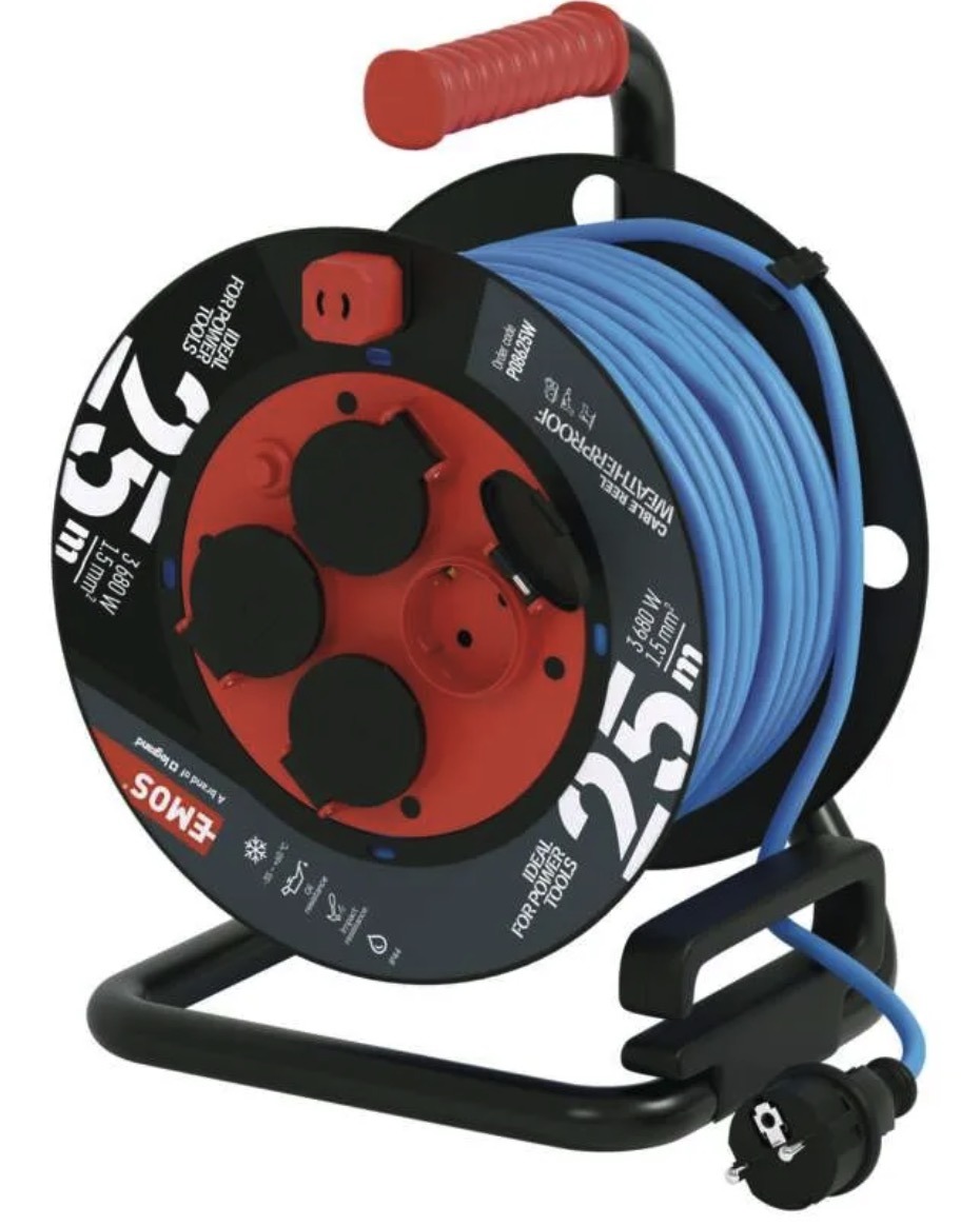 Длина 25m, 4 розетки, термозащита и тормоз для остановки катушки делают эту модель практичным выбором для длительной и регулярной эксплуатации. Это удачный вариант для тех, кому нужен надежный удлинитель на катушке для интенсивного использования.
