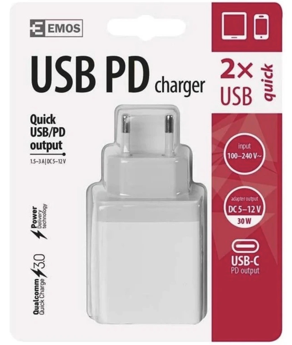 EMOS V0120 сочетает удобство, широкую совместимость и надежную зарядку в одном компактном адаптере, что делает его удачным выбором для повседневного использования.